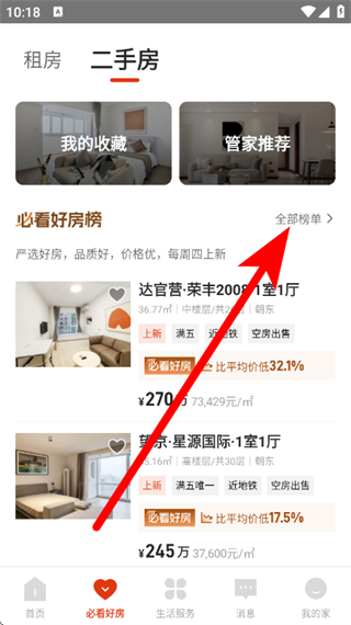 2、在必看好房页面,点击全部榜单,进入房源列表。