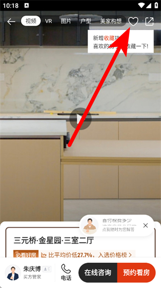 4、在详情页,点击底下收藏图标,即可收藏该房源。