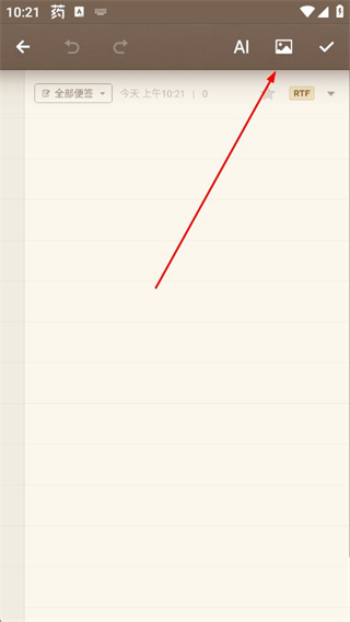 2、在便签编辑页面点击右上角的图片图标,弹出操作选择框。