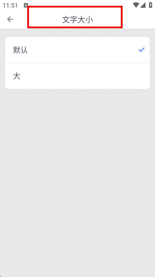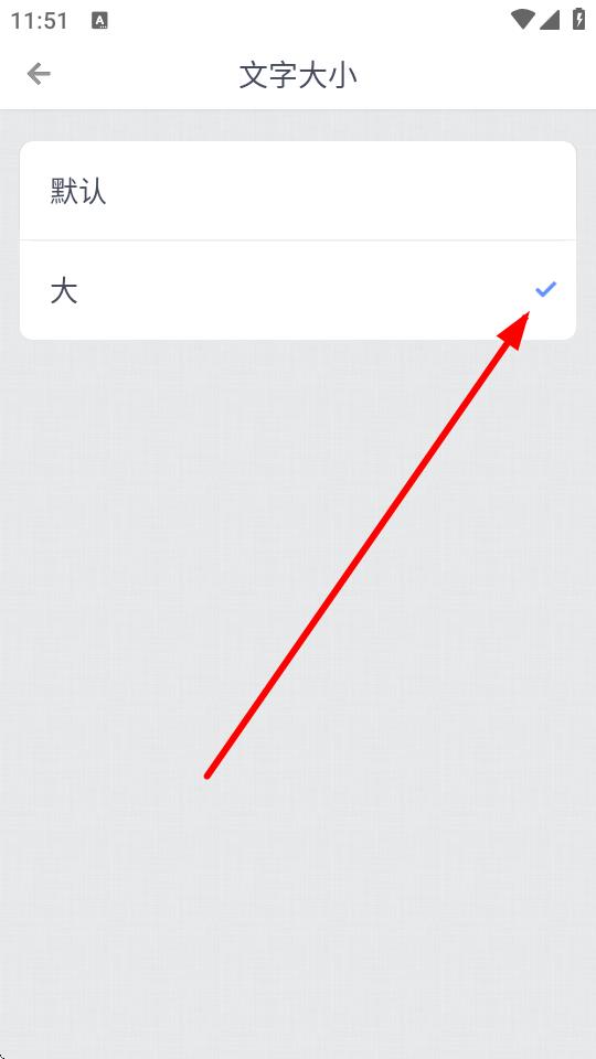 3、在文字大小设置页面中,选择默认或大等预设选项。