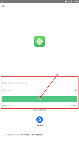 3、输入读者卡号或身份证号密码,点击登录,完成登录操作。