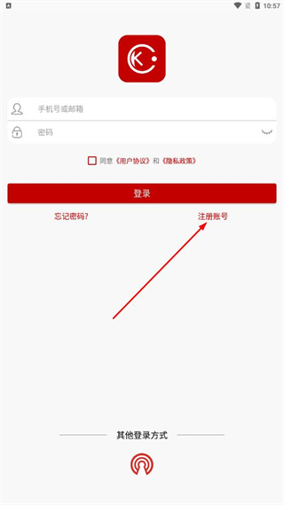 2、在登录页面,点击注册账号,进入注册新帐号页面。