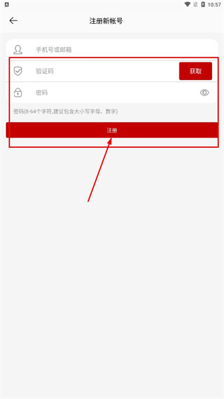 4、点击获取验证码并输入,设置密码后点击注册,完成注册操作。