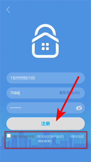3、勾选我已阅读并同意智优社区用户协议、智优社区隐私政策,然后点击注册按钮。