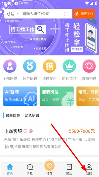 1、在求职APP首页,点击底部我的,进入个人页面。