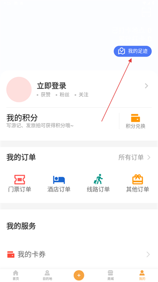 2、在我的界面内,点击右上角我的足迹的功能按钮。