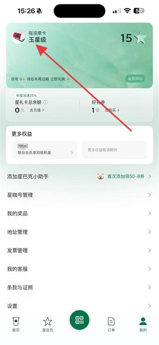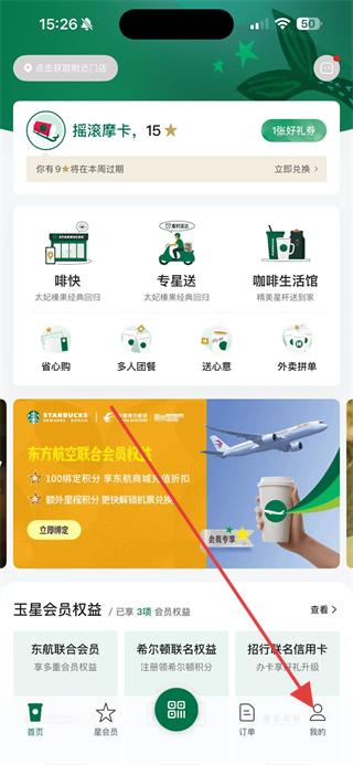 1、打开星巴克APP,点击底部导航栏的我的选项,进入个人页面。