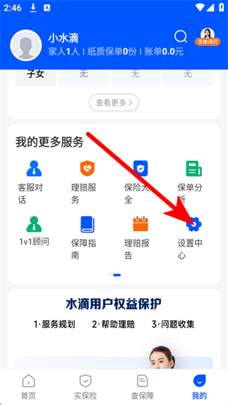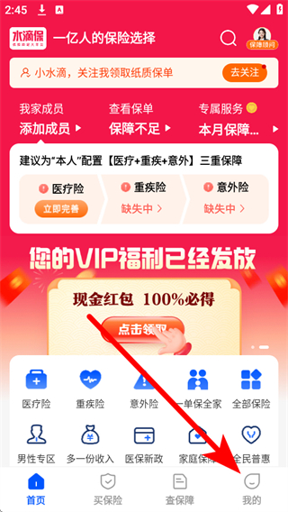 1、打开水滴保APP,点击底部导航栏的我的选项,进入个人页面。