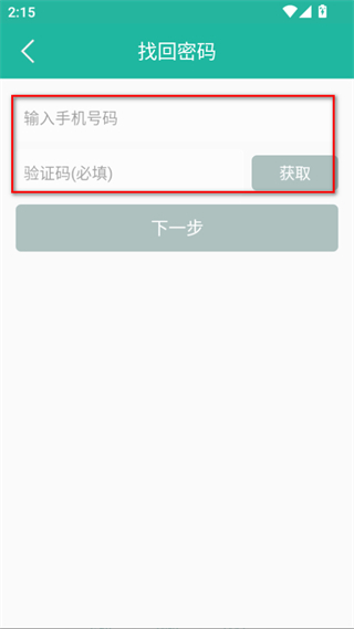 2、进入找回密码页面后,在输入框中填写手机号码,然后点击获取按钮获取验证码,并将验证码填入对应输入框。