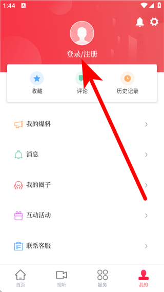2、在我的页面,点击登录注册,进入登录页面。