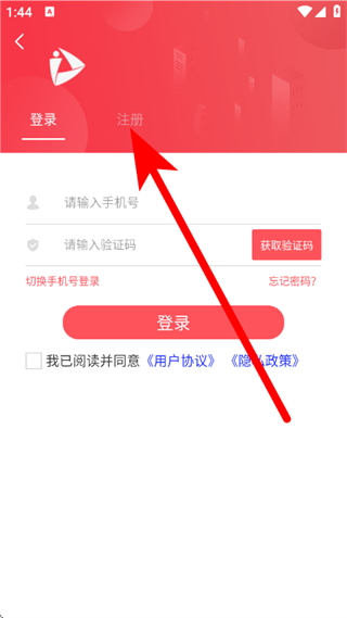 3、在登录页面,点击注册,进入注册页面。