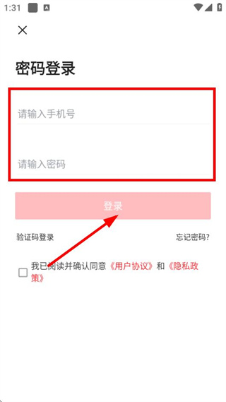 4、在页面输入账号密码,勾选协议后点击登录完成操作。