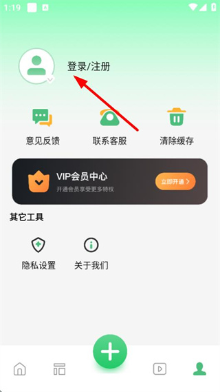 2、在个人页面点击登录注册,进入登录页面。