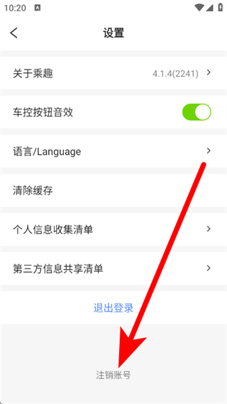 3、进入设置页面后,点击注销账号,进入注销账号页面。