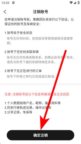 4、在注销账号页面,确认账号满足注销条件后,点击确定注销,完成注销。