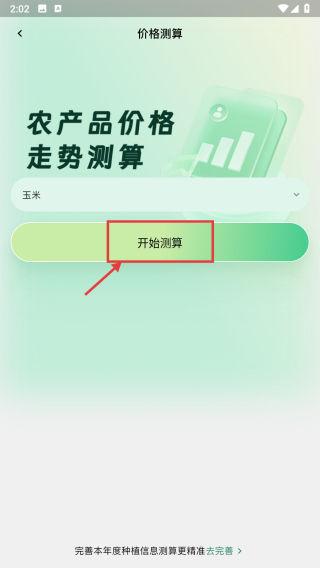 4、确认后点击开始测算按钮,获取玉米价格走势测算结果。