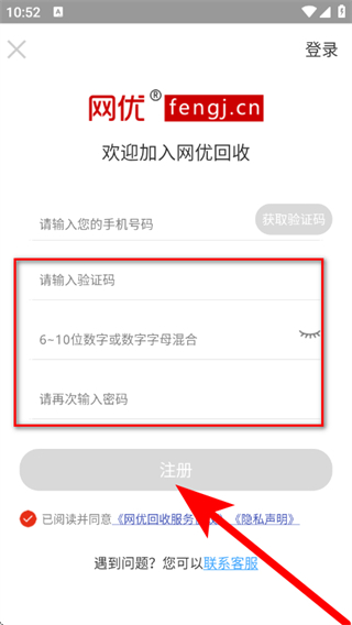 4、输入验证码、密码后,勾选同意后,点击注册,完成操作。