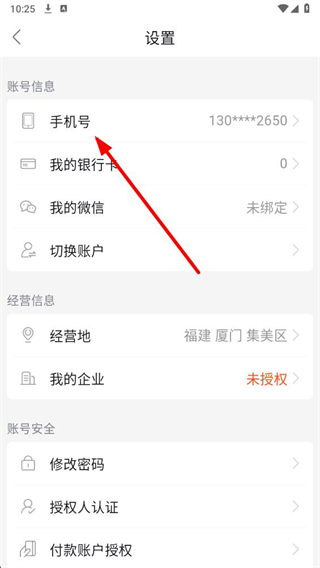 3、在设置页面,点击手机号选项,进入手机设置页面。