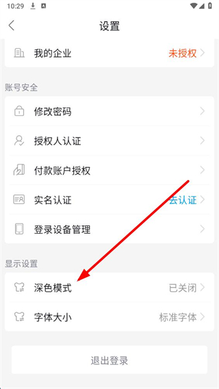 3、在设置页面,点击深色模式选项,进入深色模式设置页面。