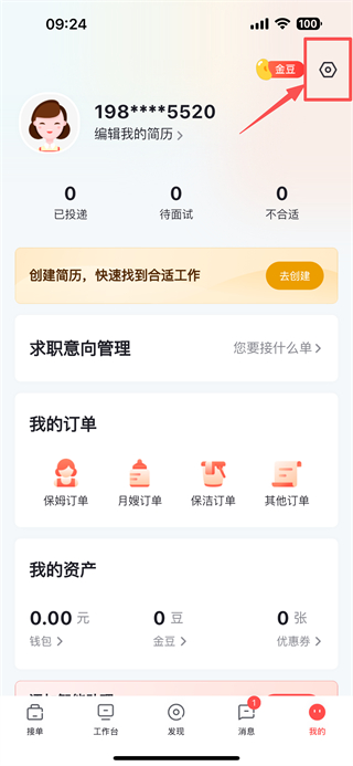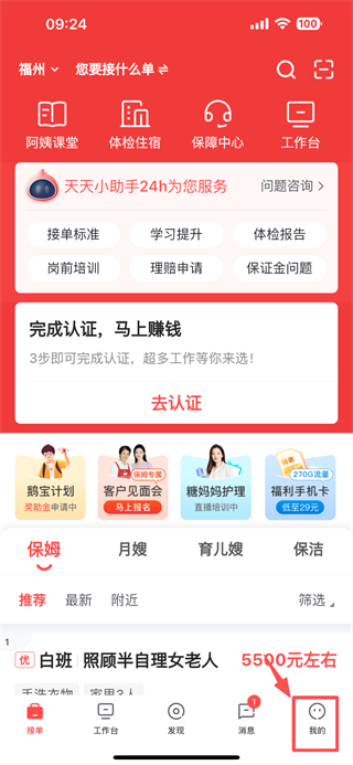 1、打开阿姨一点通应用,点击底部我的选项,进入个人中心页面。