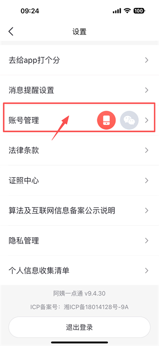 3、在设置页面,点击账号管理选项,进入账号管理界面。