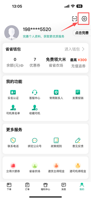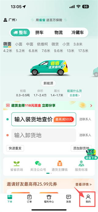 1、打开货运类APP,点击底部我的选项,进入个人中心页面。