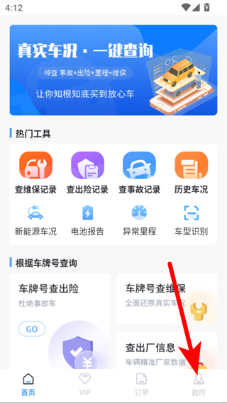 1、打开车辆维保记录查询APP,点击底部导航栏的我的选项,进入个人页面。