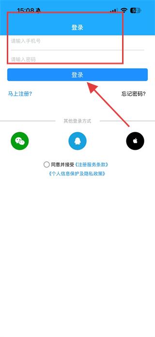 4、注册完成后,返回登录页面输入注册的手机号和密码,点击登录按钮,即可登录账号。