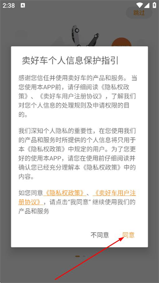 1、在个人信息保护指引弹窗中,点击同意,进入首页。