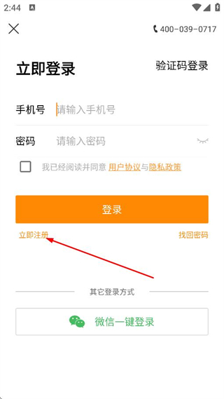 3、在个人页面,点击立即注册,进入新用户注册页面。
