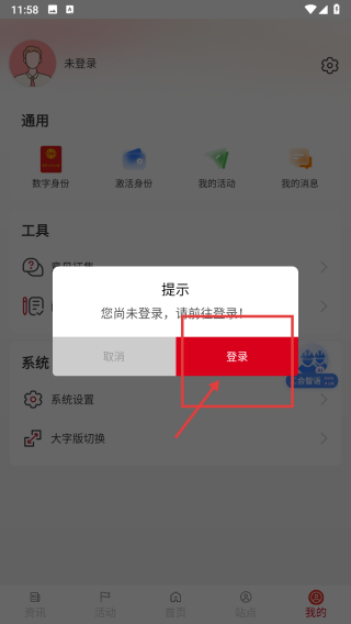 2、在个人页面当中,点击未登录选项,进入登录页面。