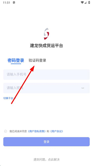 3、若选择验证码登录,点击验证码登录选项切换登录方式。