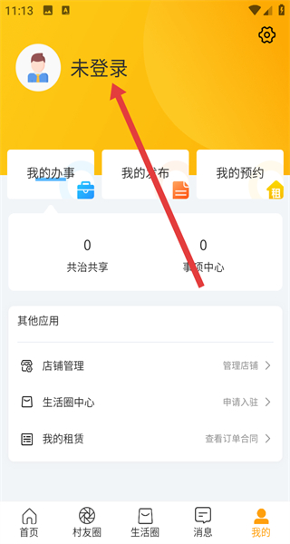 2、在个人中心界面,点击未登录区域,进入登录界面。
