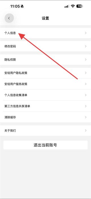 3、在设置界面里,点击个人信息选项,进入个人信息页面。