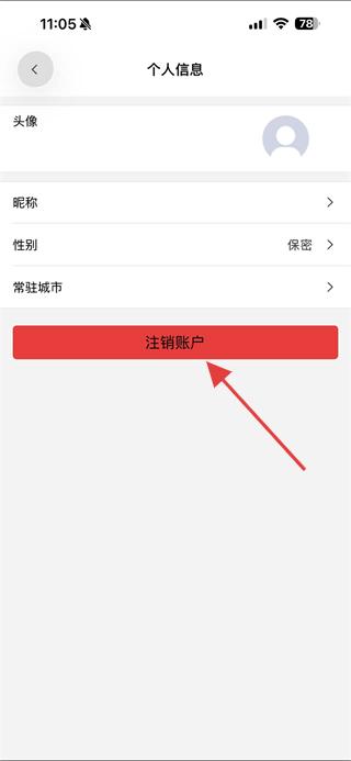4、在个人信息页面,点击注销账户选项,按提示完成账号注销操作。