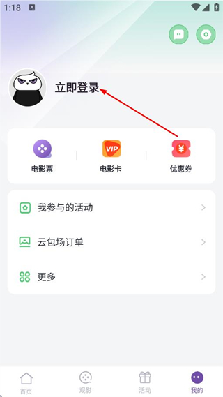 2、在我的页面,点击立即登录,进入登录选择页面。