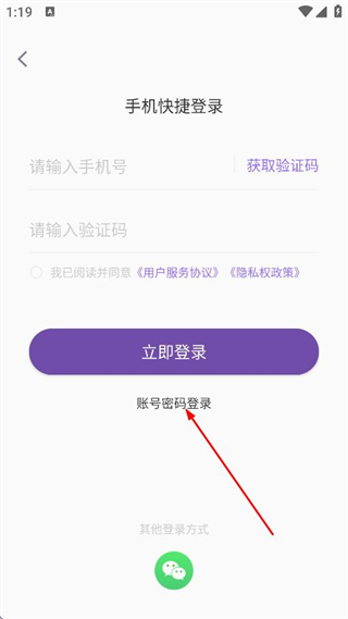 3、在登录选择页面,点击账号密码登录,进入账号密码登录页面。