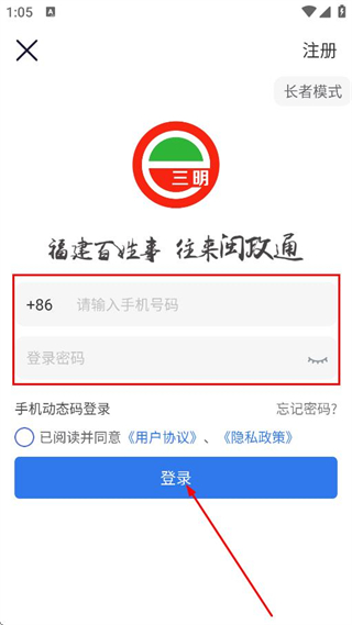 1、在e三明用户协议和隐私条款弹窗中,点击同意,进入首页。