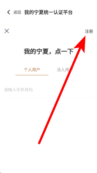 3、在我的宁夏统一认证平台页面,点击注册,进入注册页面。