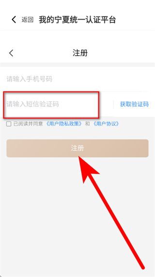 5、输入短信验证码,勾选已阅读并同意后,点击注册。