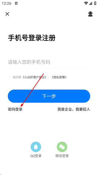 小白虾app怎么用密码登录