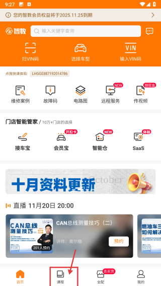 1、打开汽修学习类APP,点击底部课程选项,进入课程页面。