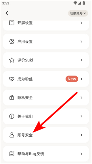 1、打开suki App,点击右上角的账号设置图标,进入设置页面。
