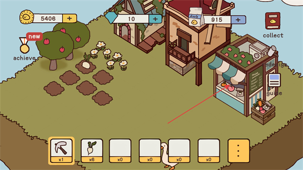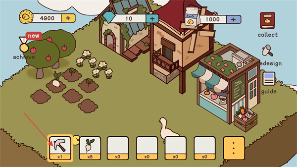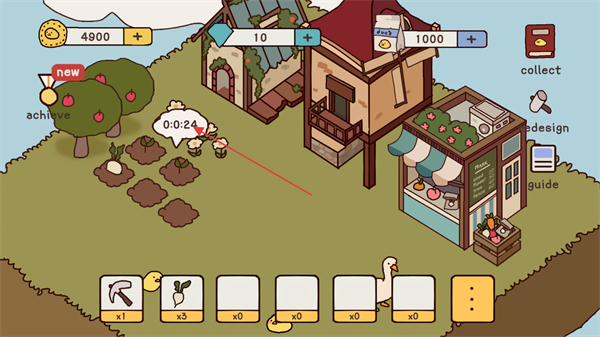 4、当蔬菜成熟后,可以使用锄头进行收获,这样就成功获得到了鸭子们的食物。