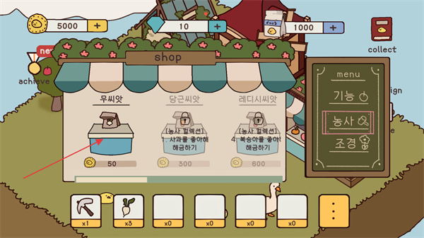 2、找到蔬菜种子菜单页面,选择一种种子花费金币进行购买。