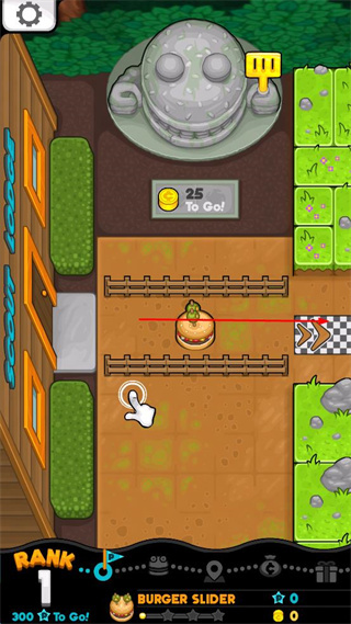 1、操控汉堡滑块,沿红色箭头方向移动,朝着黑白格子终点前进,开始收集资源。