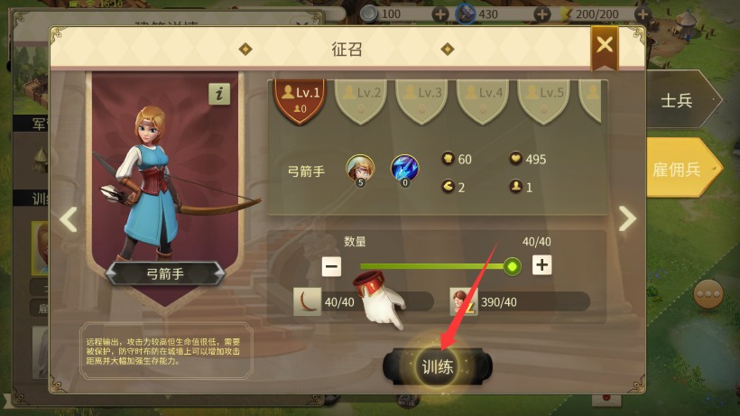 4、确认兵种与数量后点击开始训练功能,等待倒计时结束即可获得新增兵力。