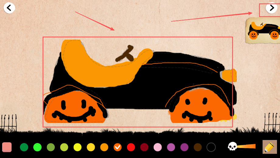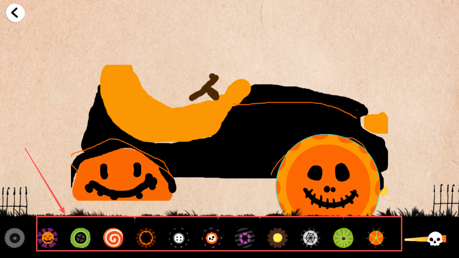 1、选择绘画模式开始创作,参考教程或自由发挥设计万圣节主题汽车造型,学习基础绘画技巧,培养艺术感知能力。