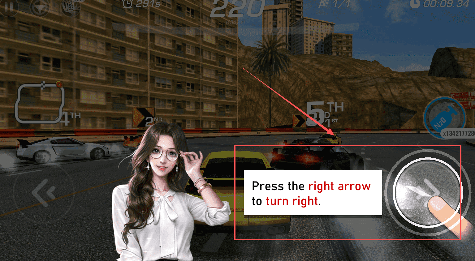 2、同时留意仪表盘指针变化并及时调整车速避免失控,从而为后续比赛建立优势。