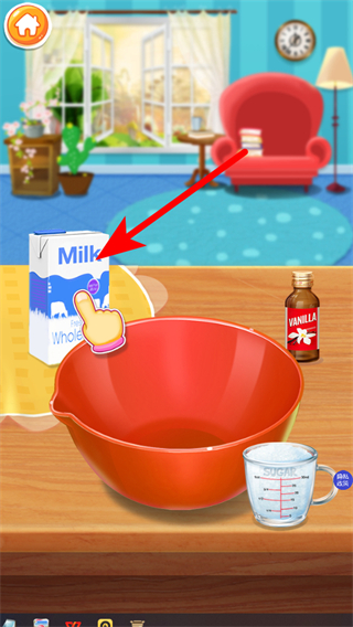 2、在制作环节,根据提示添加材料如牛奶,将材料倒入容器中,这是制作的基础步骤,确保材料添加准确,为后续搅拌做好准备。